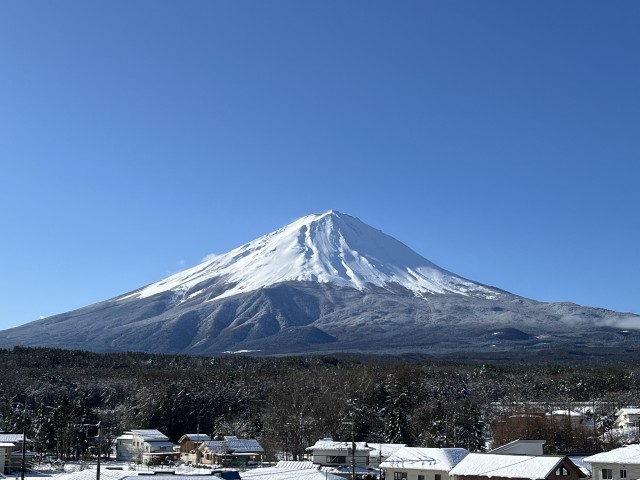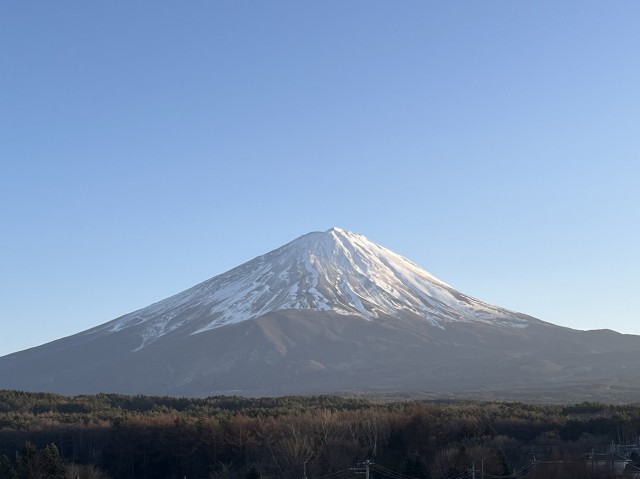 本日富士山の初冠雪が観測されました。昨日はとても寒く朝から雨が降っていました。夕方雨が上がった時間、富士山の八合目まで見えた時、白くなっていたので雪が降った事を疑うほどでした。すぐに戻って写真を取りたかったのですがまた雲に覆われてしまい、写真は今朝撮りました。初観測が五合目付近まで降ったことはここ最近記憶がないので、まるで富士山が早着替えをして皆さんに披露されたような感じがしました。