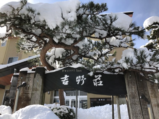 昨日降った雪が40センチほど積もりました。今日は少し暖かく、地面もまだ暖かいので解けていましたが、夕方から朝にかけては寒くなるので、除雪されている道路も水が凍りそうです。今後も雪が降る時期なので、スタットタイヤに切り替えてお越しください。
