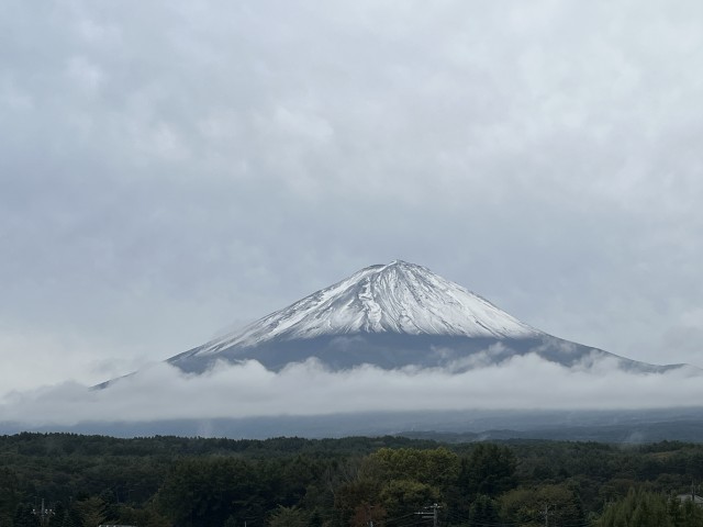 本日富士山の初冠雪が観測されました。昨日はとても寒く朝から雨が降っていました。夕方雨が上がった時間、富士山の八合目まで見えた時、白くなっていたので雪が降った事を疑うほどでした。すぐに戻って写真を取りたかったのですがまた雲に覆われてしまい、写真は今朝撮りました。初観測が五合目付近まで降ったことはここ最近記憶がないので、まるで富士山が早着替えをして皆さんに披露されたような感じがしました。